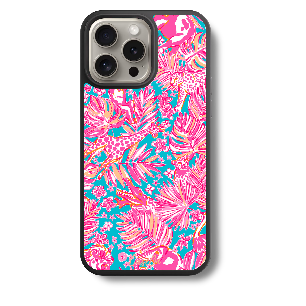 Take a walk on the wild side with the Safari Adventure MagSafe iPhone Case! This vibrant design features a playful jungle scene with giraffes, monkeys, tropical leaves, and exotic flowers in bold pink, yellow, and teal hues. It's the perfect way to bring a splash of adventure to your everyday life.